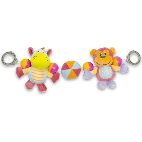 Hochet en peluche pour poussette Baby Mix hippopotame et singe