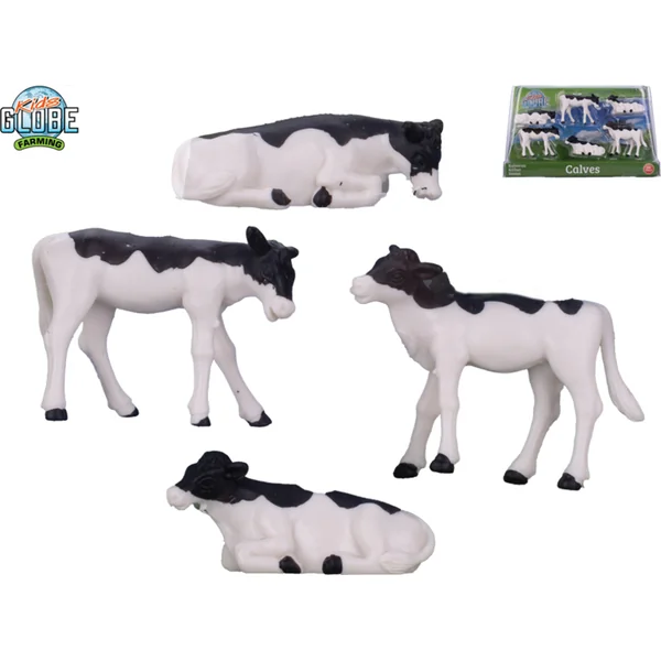 Kids Globe Farming veaux couchés/debout 1:32 noir et blanc 6pcs