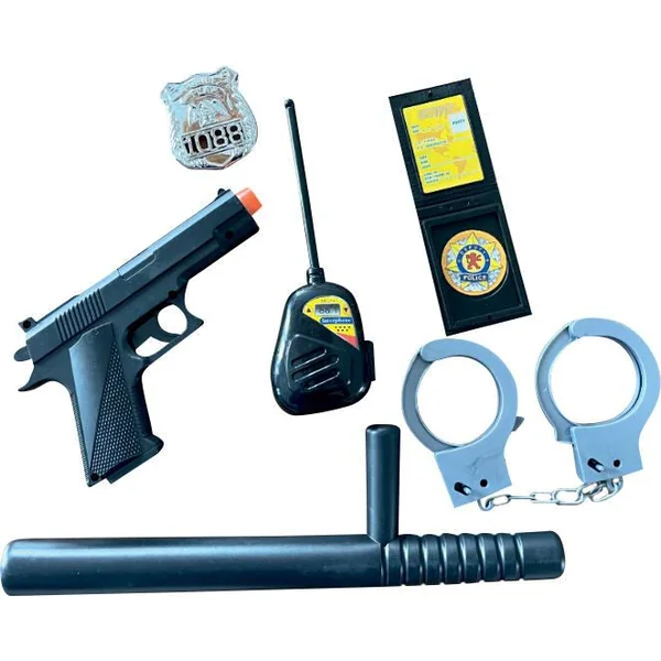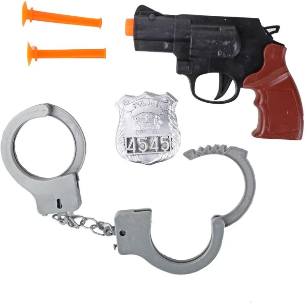 PISTOLET 14 CM FLECHETTES AVEC MENOTTES ET BADGE DE POLICE