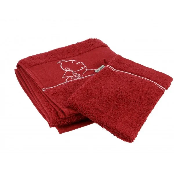 TINTIN: SERVIETTE DE BAIN ET GANT DE TOILETTE (ROUGE)