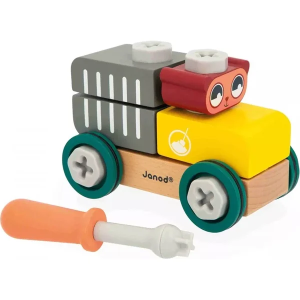 Janod BricoKids Kit de construction en bois voiture avec outils Ours 25 pcs