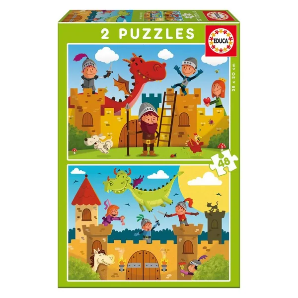 2 PUZZLES DE 48 PIECES DRAGONS ET CHEVALIERS