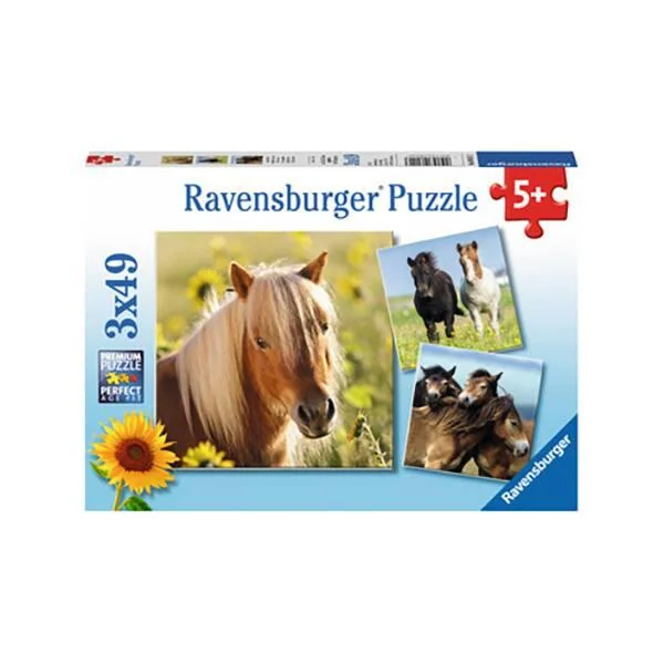 3 PUZZLES DE 49 PIECES ADORABLES PONEYS