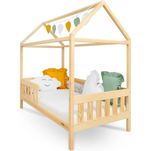 Lit enfant maison avec balustrade et sommier New Baby CASTELLO 160×80 cm naturel