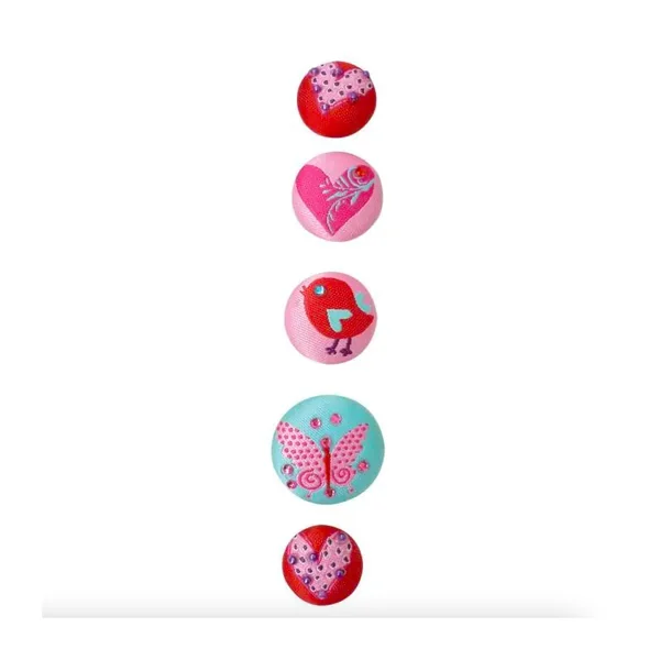Magnet tissu 20 mm – Coeur et motif – 5 pièces – Graines créatives