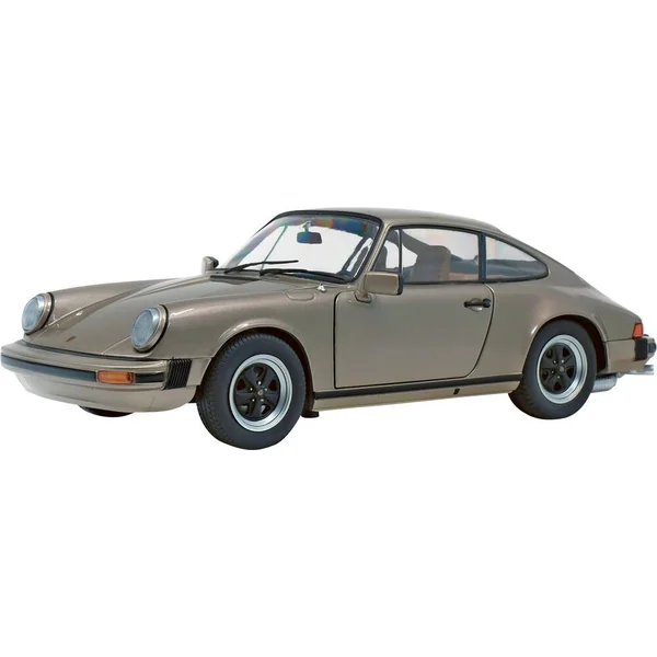 Voiture de collection au 1/18 ème. Il s’agit de la Porsche 911 3.2 Carrera bronze 1984. Voiture en métal, roues libres. Seules les porte s’ouvrent.