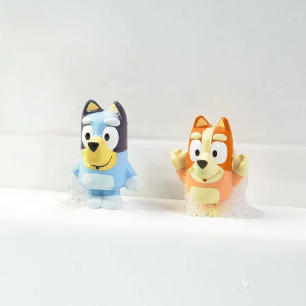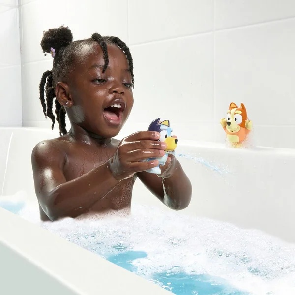 Amuse-toi à t’arroser dans le bain avec ces 2 gicleurs Bluey et Bingo.
