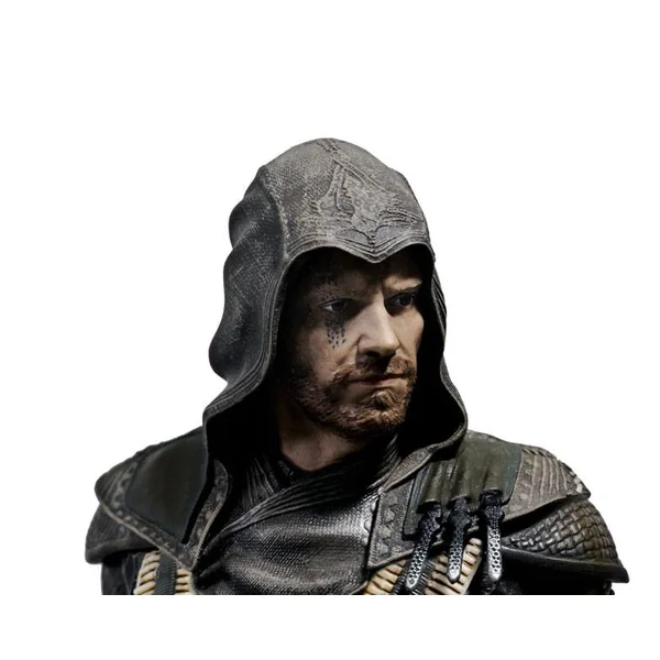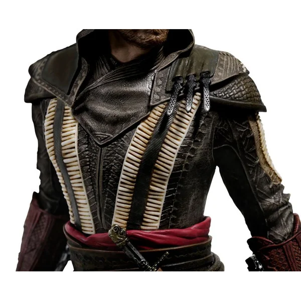 Voici une figurine du héros d’Assassin’s Creed, Aguilar, version Michael Fassbender. En effet, il a sur cette statuette le visage de l’acteur, tel qu’il apparait dans le film sorti en 2016. C’est également l’acteur qui prête ses traits à Callum. Il faut admirer au passage le détail des vêtements et des plis. Une jolie reproduction et une statuette qui fait belle impression.