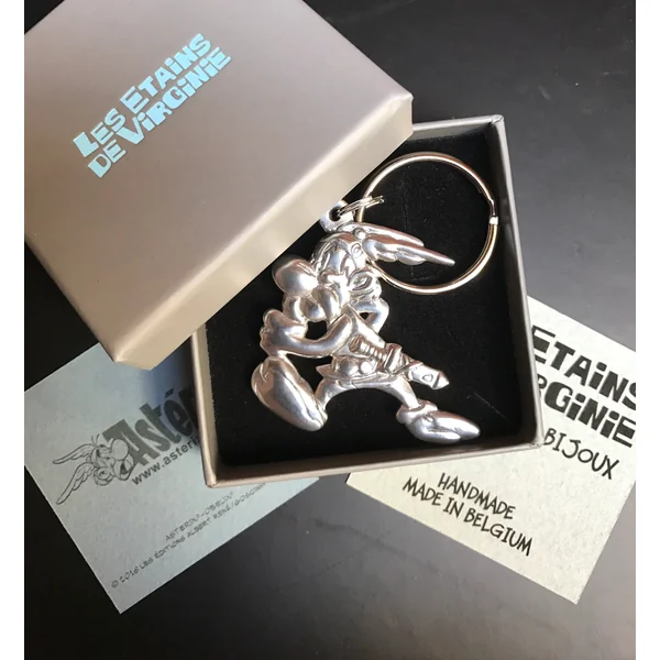 Porte-clés en étain pur livré dans une petite boîte écrin avec certificat d’authenticité.