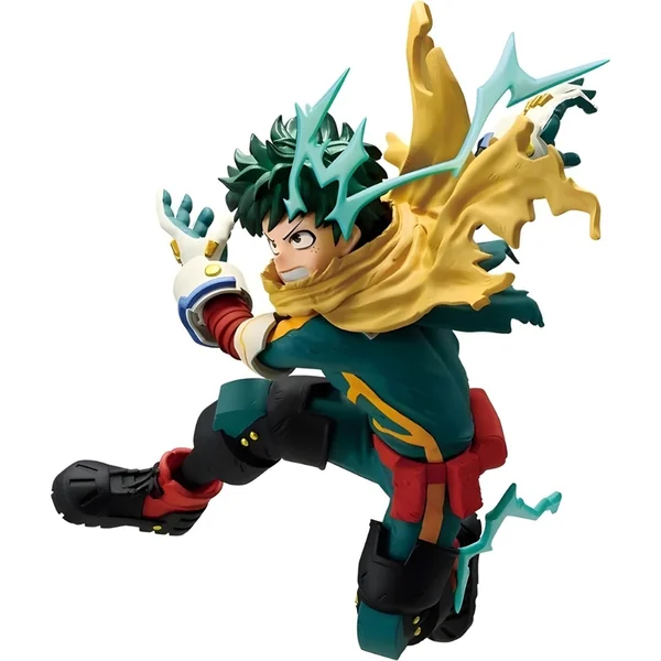 La figurine est accentuée par des éclairs turquoise translucides ébouriffés émanant de sa capuche, représentant la puissance de One For All qui le traverse. Cette figurine incarne parfaitement la croissance de Deku en tant que héros qui « sauve pour gagner ».
