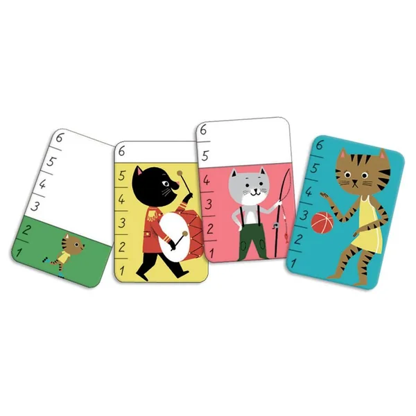 Jeu de bataille. c’est le plus grand chat qui gagne ! et si 2 chats sont de la même taille, attention, il y a « bataMiaou » !