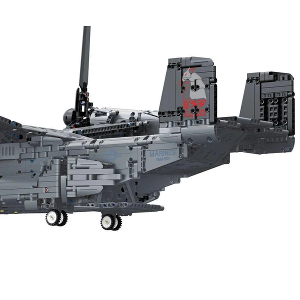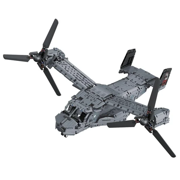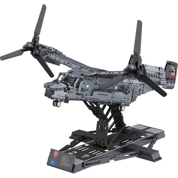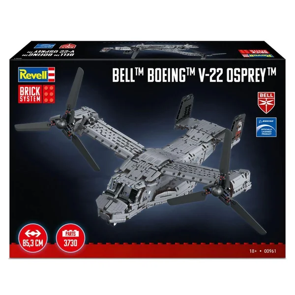 Nouvelle gamme Revell Brick System. Montez le Bell Boeing V-22 Osprey à l’échelle 1:25, avec système de briques à emboiter. Environ 3700 pièces, longueur 85,3 cm, Hélices mobiles, Train rétractable, Portes de chargement ouvrantes, Support de présentation 2 en 1