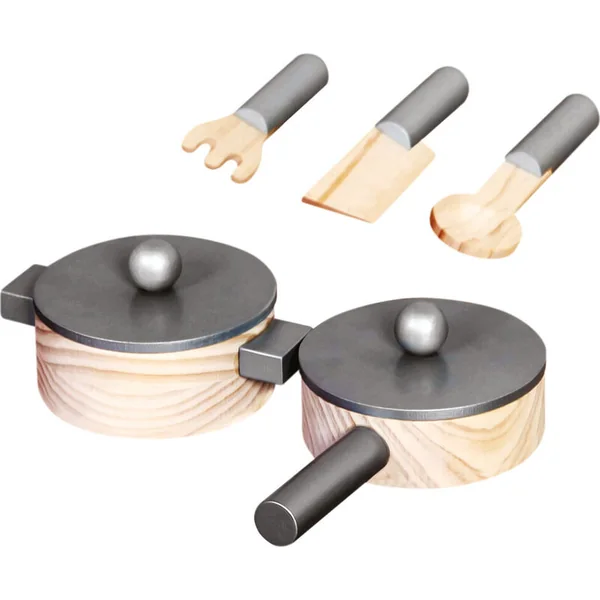 Le paquet comprend 8 accessoires, y compris deux casseroles avec couvercles, un couteau, une cuillère en bois et une fourchette. Tous les accessoires sont adaptés aux petites mains et permettent aux enfants de développer leur imagination, leur motricité et leur sens de l’ordre pendant le jeu.