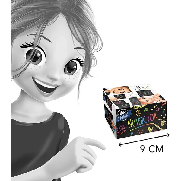 Le bloc-notes contient au total 150 feuilles de taille 9x9cm. À l’aide de l’outil en bois fourni, écrivez/grattez un message coloré.
