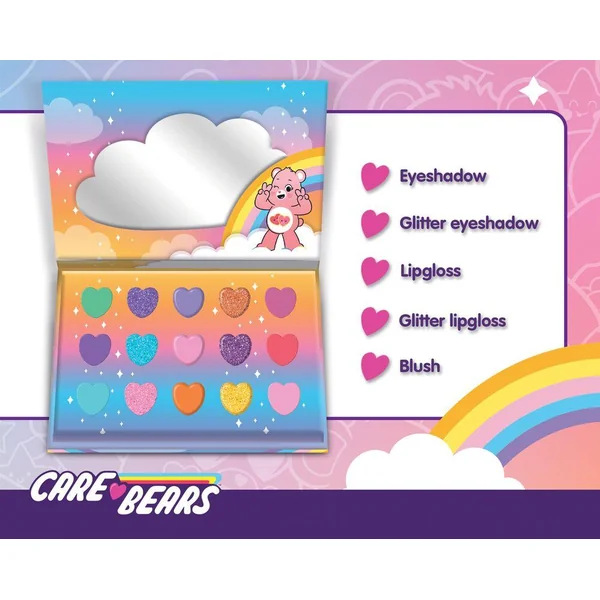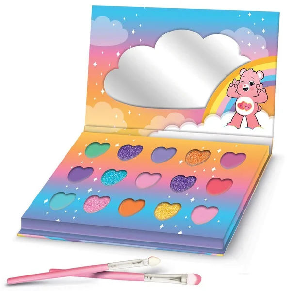 Une palette de maquillage pailleté et brillant toute mignonne à l’éffigie des bisounours.