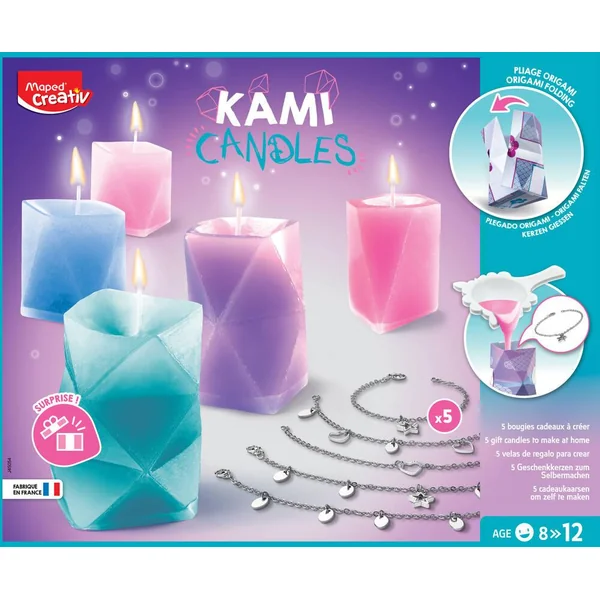 Coffret fabrication de 5 bougies pliage origami.