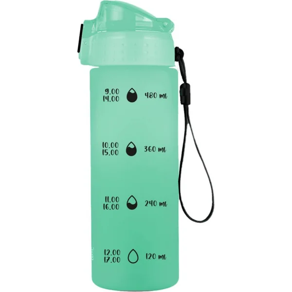 Au dos de la bouteille, nous trouvons une échelle pour le régime de boisson, qui aide à un mode de vie sain. La bouteille est adaptée au lave-vaisselle à une température maximale de 80 °C. Une corde pratique facilite la manipulation, le diamètre de la paille est de 2,5 cm.