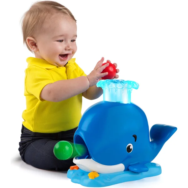 Des lumières amusantes et des sons s’allument, les balles sautent de la bouche de la baleine, encourageant le jeu répétitif et le mouvement de l’enfant. Les enfants adorent chasser les balles et le plaisir est infini. L’emballage comprend 3 balles colorées.