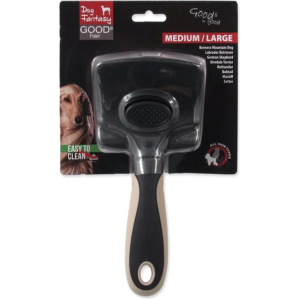 - Entretien du pelage : La brosse DOG FANTASY Kefa DF avec des picots auto-nettoyants M/L s’occupe du pelage de votre animal de compagnie.