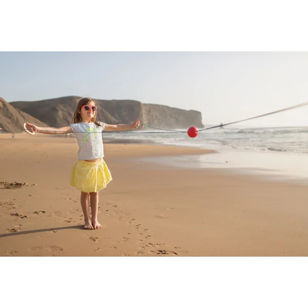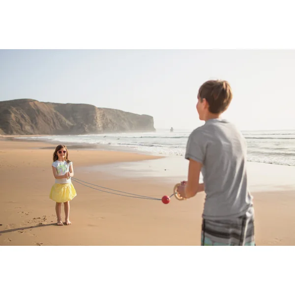 Jeu sportif pour les enfants à partir de 6 ans. Le jeu est destiné à deux enfants. Prenez les poignées en main de manière à envoyer la balle à votre coéquipier en écartant la corde. Le jeu est amusant et a en même temps un impact positif sur la condition physique des enfants. La mission de ce jeu est de permettre aux enfants de s’amuser sans smartphones ni tablettes.