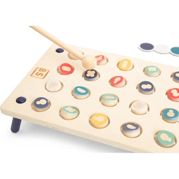 Un joli jeu en bois où vous devez être le premier à collecter six figurines sur votre carte de couleur.