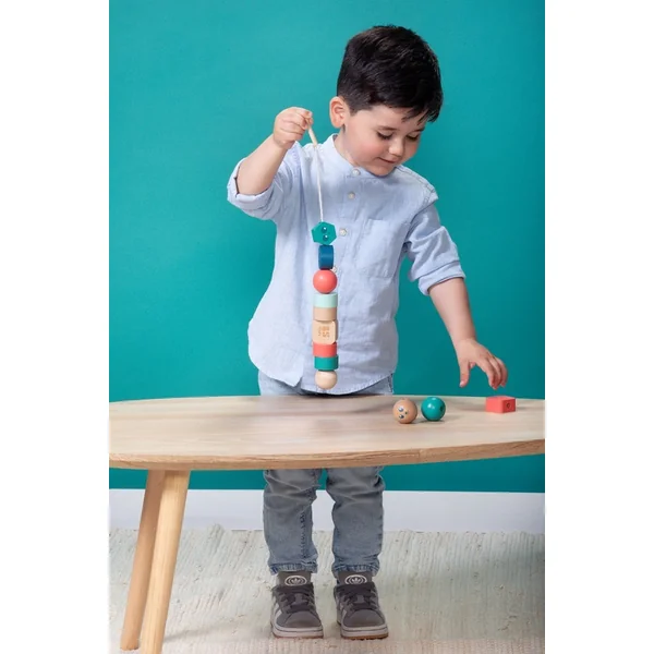 Ensemble de perles en bois de différentes couleurs pour les enfants à partir de 18 mois. Enfiler des perles colorées est un excellent moyen de pratiquer la coordination main-œil et la motricité fine. Les perles et les cubes sont extra grands et faciles à manipuler pour les jeunes enfants.