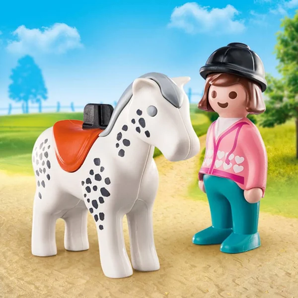 Coffret PLAYMOIBIL 1.2.3 pour découvrir les premiers apprentissages : reconnaître et nommer. Contient une cavalière et un cheval. PLAYMOBIL 1.2.3 accompagne les enfants de façon ludique pendant les premières années de leur vie. Le monde est si grand, coloré et impressionnant aux yeux des enfants. Tout ce qui est expérimenté et appris aujourd’hui constitue un socle pour la vie future. PLAYMOBIL 1.2.3 encourage ce développement de manière progressive et ludique parce que chaque enfant grandit à sa façon et à son propre rythme.Easy Start : Grâce à ce jouet, dès les premiers apprentissages, les plus petits peuvent exercer leur motricité avec des formes simples qui stimulent l’émotion et l’exploration, mais aussi l’imitation et l’apprentissage des mots.