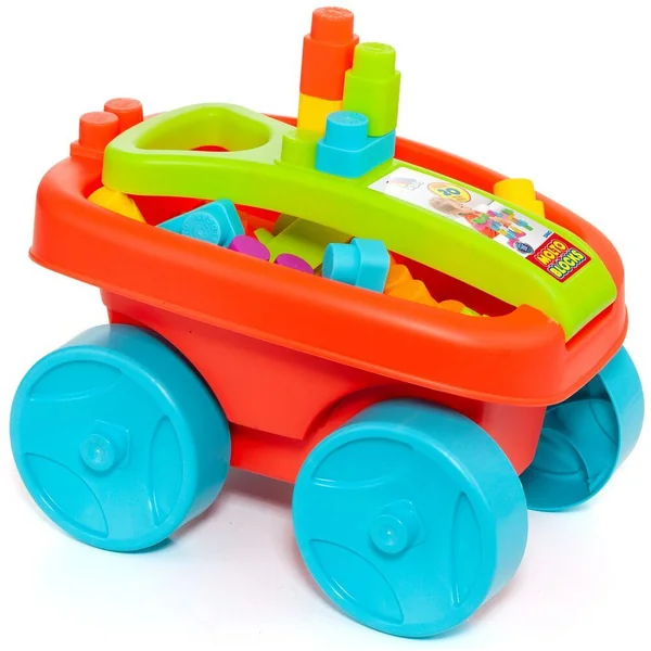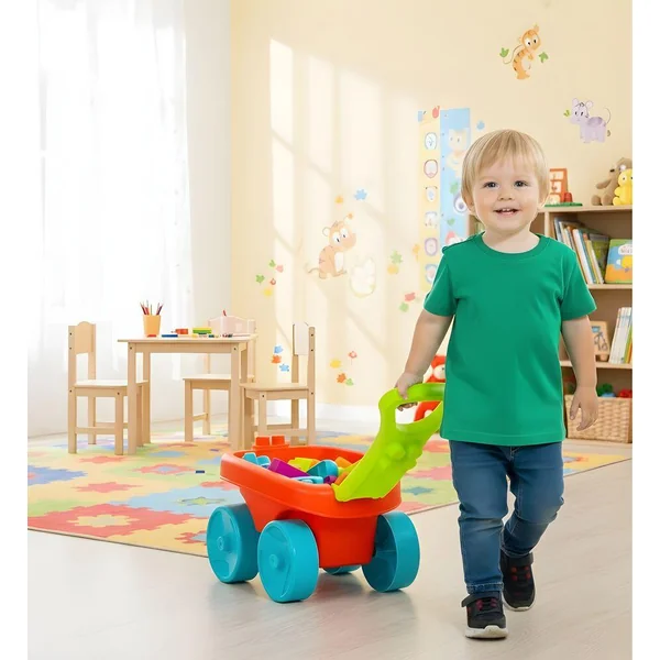 Chariot robuste et stable pour enfants, avec poignée pliable et espace de construction. Les blocs se rangent dans le chariot après utilisation. Dimensions du chariot : 40.5 x 27.2 x 28.5 cm. Comprend 20 briques de construction en plastique pour jouer et stimuler le développement de l’enfant. Avec ces blocs, les enfants apprennent des concepts simples, assimilent différentes couleurs et tailles, formes et équivalents. Ils développent aussi leur imagination en créant des formes. Facile à manipuler. Des heures d’amusement. En plastique : PP. Avantages pédagogiques : développe la coordination main-œil, la créativité et l’imagination. Fabriqué en Europe.