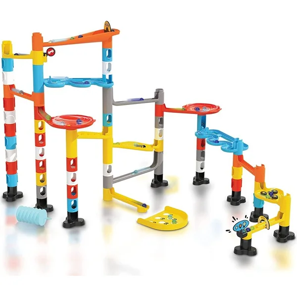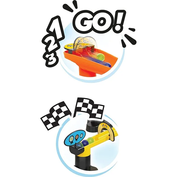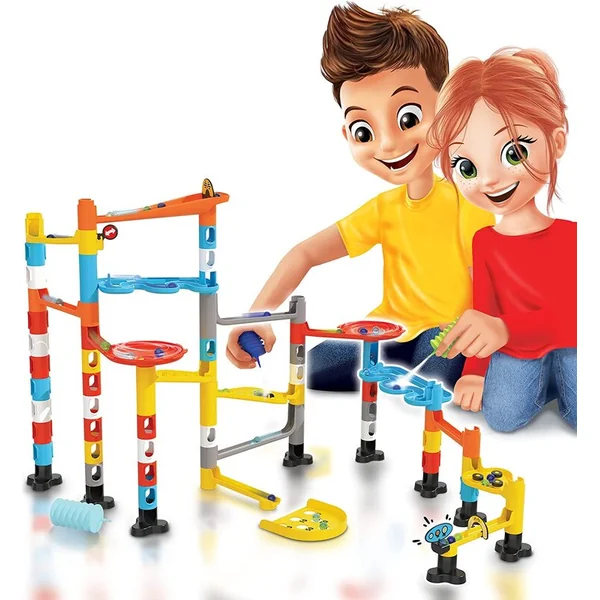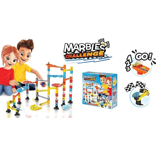 Un circuit à billes contenant de nombreux obstacles et éléments acrobatiques. Assemblez votre propre circuit selon votre imagination ou selon des plans illustrés. La bille doit réussir le lancement de départ, puis des descentes accélérées, des ralentisseurs, des virages, un entonnoir, un obstacle aquatique, des pièges et d’autres dangers. Avec vos amis, vous pouvez ensuite concourir pour voir quelle bille atteindra la fin du circuit le plus rapidement.