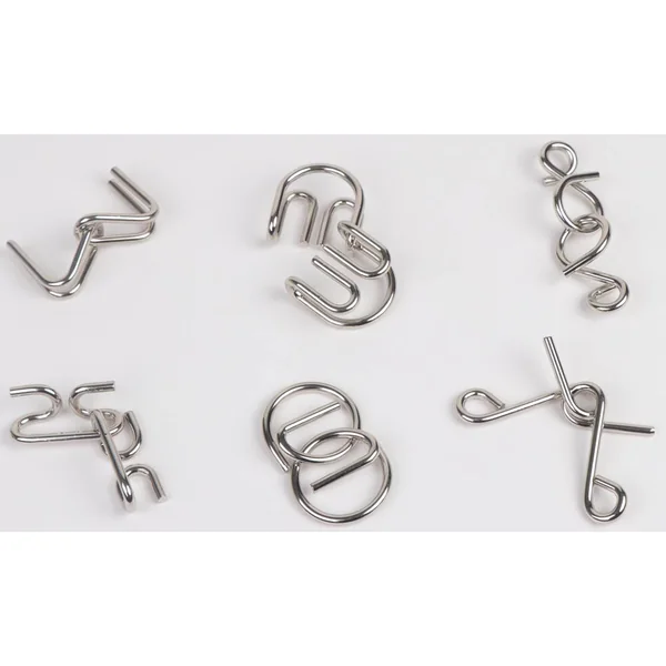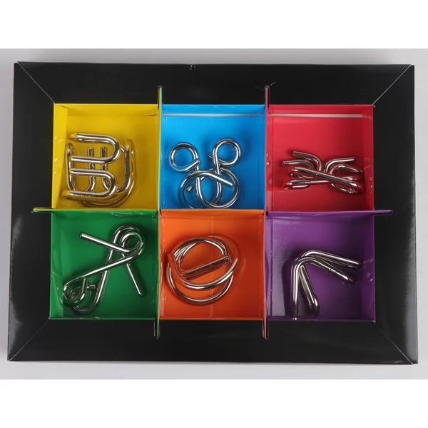 Coffret contenant 6 casses têtes en métal différents, d’environ 5 cm. Notice avec solutions incluses.