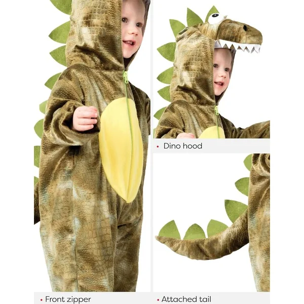 Costume de dinosaure pour le plus petit membre de la famille. Un adorable et mignon pyjama de dinosaure, conçu pour faciliter le changement de couches, avec une queue et un bonnet. Le design du pyjama avec un animal en peluche, idéal non seulement pour habiller votre petit, mais aussi comme cadeau et costume pour des célébrations.