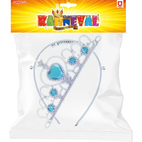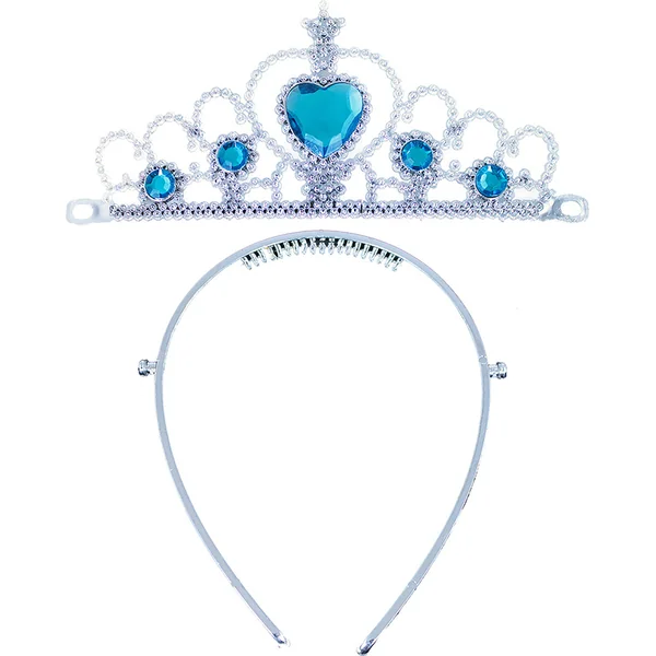 La couronne est fabriquée en PVC et décorée de pierres décoratives de couleur bleue.