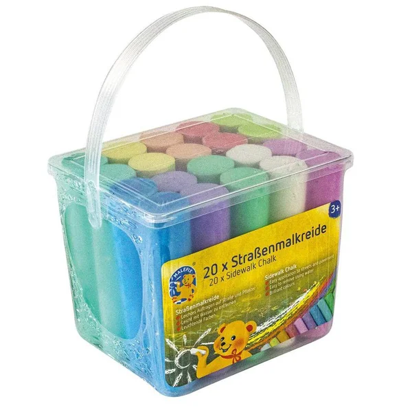 Pustefix: CRAIES de TROTTOIR 13×10,8x10cm, seau avec 20 pièces, couleurs gaies –
