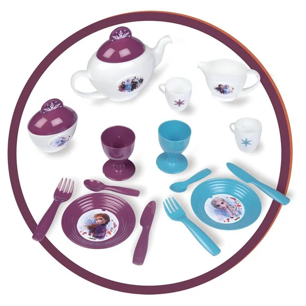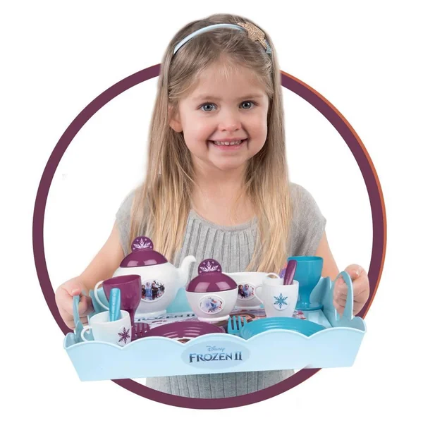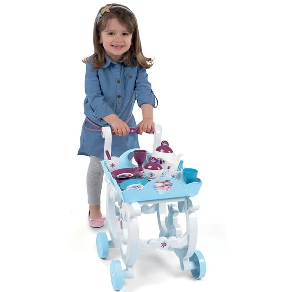 Avec cette desserte XL tu seras plongé dans l’univers de tes personnages préférés : Elsa, Anna, et Olaf ! Tu pourras transporter et servir le thé à tes amis ! En plus avec le plateau amovible, il sera facile et rapide de vous installer là où vous le souhaitez pour déguster votre goûter ! La desserte XL La Reine des Neiges 2 a tout pour te ravir : 2 verres à pied, 2 assiettes, 2 couteaux, 2 cuillères, 2 fourchettes, 2 tasses, 1 grande théière, 1 sucrier, et 1 pot à lait. Très complète, cette grande dinette pourra t’accompagner durant de longues heures de jeu ! Made in France.