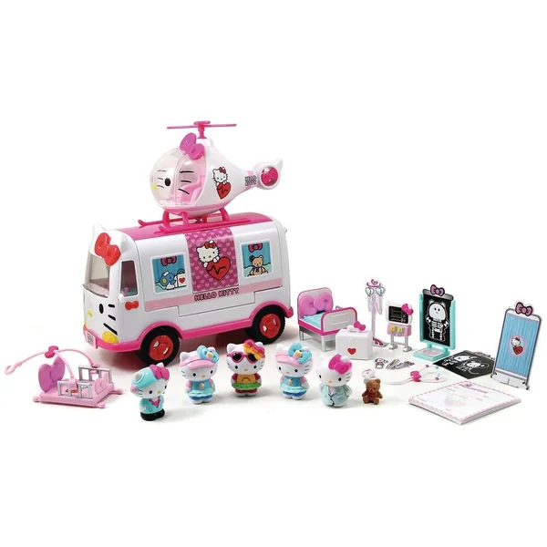 Comprend 1 ambulance à roues libres (longueur : 34 cm), 1 hélicoptère (longueur : 17 cm), 6 figurines et de nombreux accessoires. Le toit de l’ambulance et la porte de l’hélicoptère s’ouvrent.