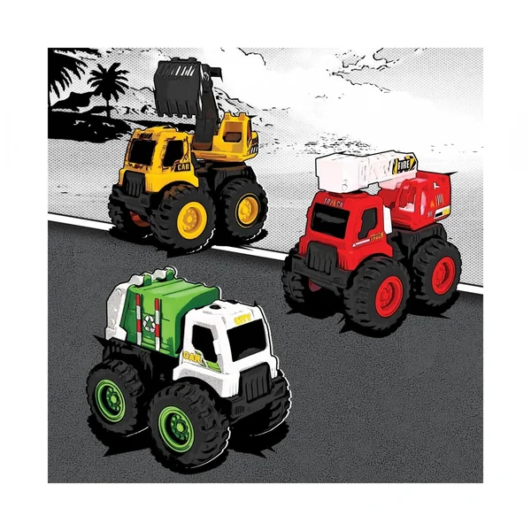 Designed for action, these monster trucks utilize a friction drive mechanism, allowing them to roll forward with just a gentle push. This feature not only adds to the excitement but also encourages children to engage in active play. Their compact size makes them ideal for on-the-go fun, easily fitting into backpacks for playdates or trips. Whether as a small gift, a fun surprise, or a collectible item, the Mighty Engines provide endless entertainment and adventure.