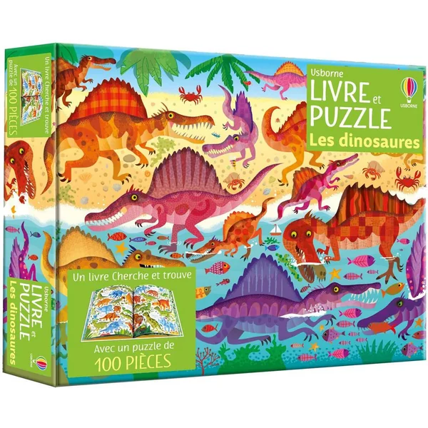 Ce puzzle de 100 pièces et le livre illustré de 24 pages qui l’accompagne invitent les enfants à découvrir la vie au temps des dinosaures. Présentés dans une jolie boîte, ce livre et son puzzle feront un beau cadeau. Le puzzle de qualité s’adresse à des enfants qui sont prêts à aborder ce niveau de difficulté (100 pièces). Une activité stimulante qui sollicite la concentration et le sens de l’observation dès 5 ans.