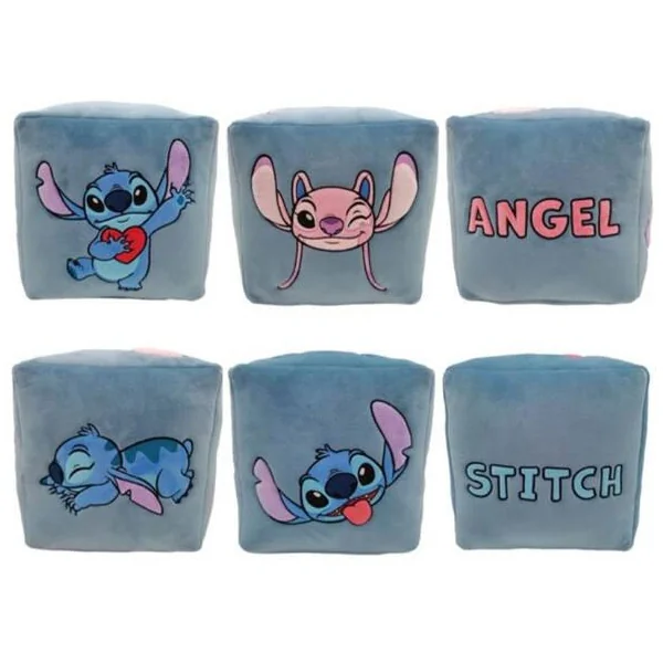 Coussin-cube brodé ultra-moelleux à l’effigie de Stitch et Angel issu du film Disney Lilo et Stitch.