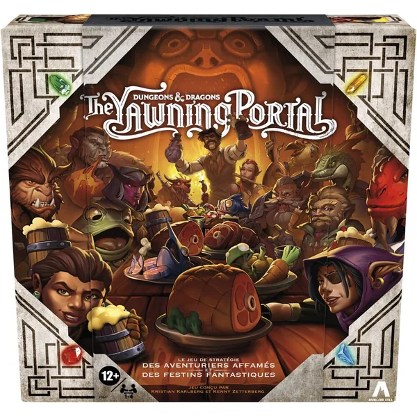 On passe un bon moment à la taverne du Portail Béant avec le jeu Dungeons and Dragons: The Yawning Portal : une expérience inédite à la fois pour les experts de D&D et les débutants ! L’auberge emblématique attire des aventuriers fascinants qui ont tous un point commun : ils ont un estomac vide et des papilles uniques. Les serveurs doivent associer les pions Nourriture aux commandes des cartes de héros. On peut recevoir des gemmes colorés (et des points) pour chaque pion Nourriture correspondant, ou un bonus pour un service parfait. On obtient plus de points si on est le premier à compléter un objectif, ou en remportant des bonus de fin de partie. Le joueur avec le plus de points à la fin de la partie gagne ! Mais attention, les gemmes colorées les plus nombreuses sur le plateau valent plus de points. Alors, il faut jouer stratégiquement pour faire pencher la balance en sa faveur. Ce jeu D&D est un super cadeau pour les fans de D&D et les débutants, et un jeu passionnant pour les soirées de jeux en famille. Dungeons & Dragons, D&D, Forgotten Realms, Yawning Portal et leurs logos respectifs sont des marques de commerce de Wizards of the Coast LLC. Copyright 2022 Wizards. Tous droits réservés. Avalon Hill et Hasbro et toutes les marques et tous les logos associés sont des marques des commerces de Hasbro, Inc.