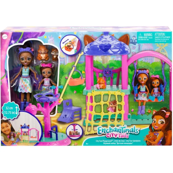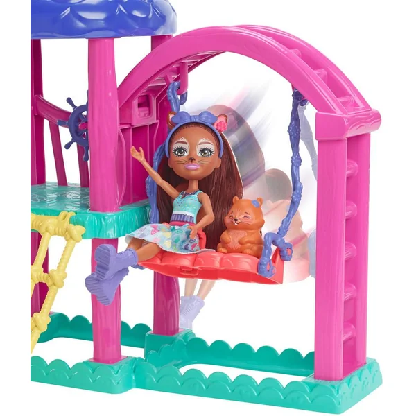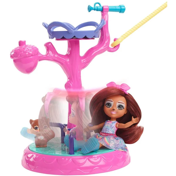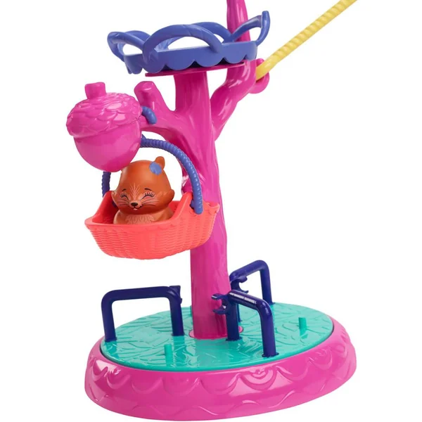 Les écureuils, deux POUPEEs et deux figurines ont trouvé une grande aire de jeux avec balançoire, tyrolienne, tourniquet et des accessoires.
