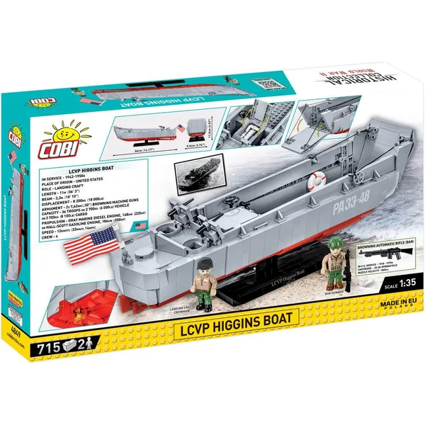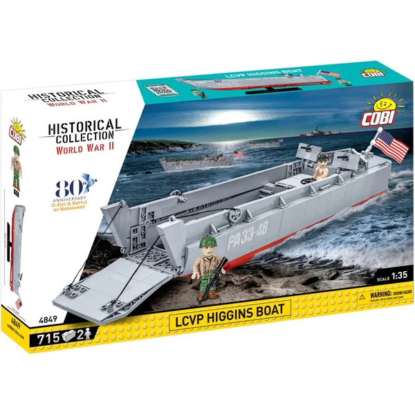 ENGIN DE DEBARQUEMENT LCVP HIGGINS BOAT 1:35 – Plongez au cœur de l’histoire avec ce magnifique jeu de construction signé Cobi. Conçu pour les passionnés de la seconde guerre mondiale, ce modèle réduit du célèbre engin de débarquement américain est composé de 715 briques.