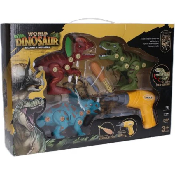 - Le set comprend : 3 dinosaures, tournevis électrique (17 x 12 cm), tournevis manuel