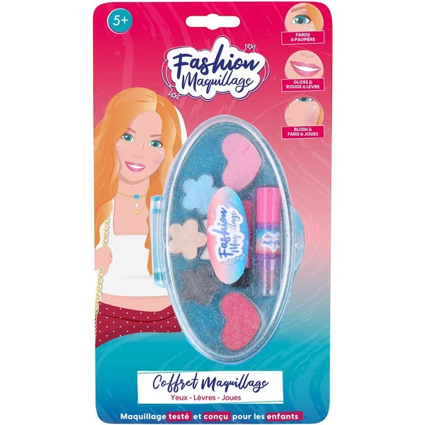 1 boite avec 2 blush, 4 fards à paupières et 2 rouges à lèvres.