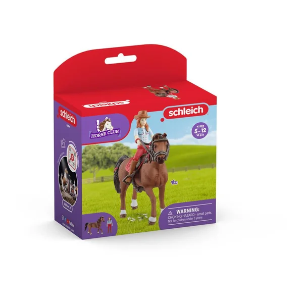 Horse Club Hannah & Cayenne de Schleich® Horse Club sont une équipe imbattable. Ils vont ensemble contre vents et marées ! La figurine entièrement articulée Hannah peut non seulement se tenir debout, mais aussi plier les jambes pour s’asseoir sur son hongre Quarter Horse Cayenne. Le lot comprend aussi des brides, des rênes et une selle pour l’équitation Western, car c’est la grande passion de Hannah. Le bracelet rouge qu’elle porte est un signe de l’amitié profonde qui unit les deux amies du Horse Club.