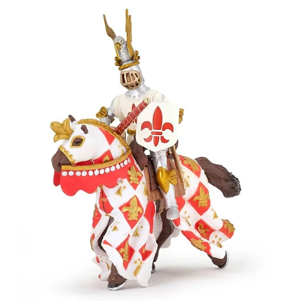 Fidèle destrier du chevalier blanc fleur de lys il arbore avec fierté les couleurs de son royaume. Ensemble ils font front, repoussant les vagues d’ennemies qui tentent de s’emparer du château.
