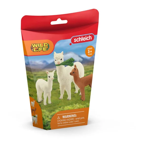 La famille d’alpagas WILD LIFE de Schleich® est originaire des Andes en Amérique du Sud, où ces animaux sont élevés pour leur laine douce qui tient chaud. L’alpaga fait partie des camélidés sans bosses. Il est placide et sympathique. Les deux bébés possèdent une toison différente : l’un est blanc, l’autre marron. Leur mère les allaite pendant 6 à 8 mois, puis ils se nourrissent d’herbe.