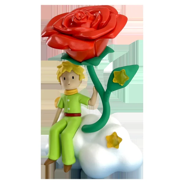 Le petit prince sur sa planète tient le mouton dans ses bras lorsqu’un vol d’oiseaux s’élève dans les cieux.