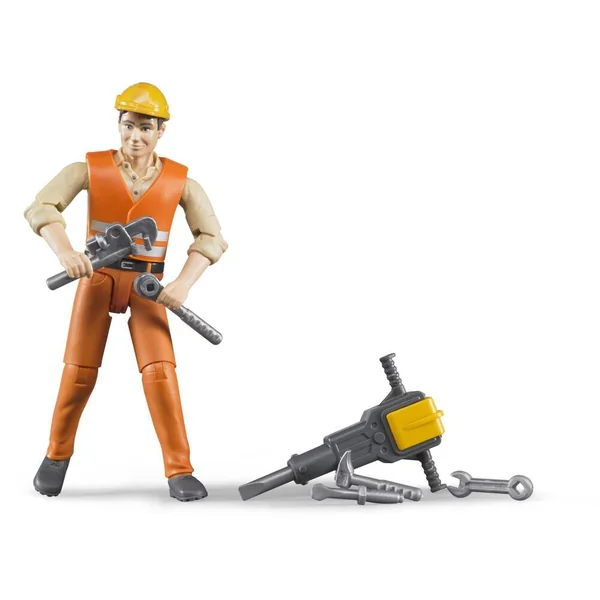 Contient : 1 figurine ouvrier articulée de 10.7 cm et des accessoires de chantier. Pour jouer à l’intérieur et l’extérieur. En plastique. Il existe dans la vaste gamme de produits Bruder une multitude de camions, de machines de chantier, d’excavateurs, de grues et bien plus encore, reproduits dans les moindres détails. Pour la compléter à la perfection, elle propose des figurines qui apportent encore plus de plaisir et de réalisme dans le paysage ludique, et qui stimulent le jeu de rôles et la créativité des enfants. L’ouvrier de chantier avec accessoires est le complément idéal de tous les véhicules de chantier de la gamme. Équipé, à titre de sûreté, d’un casque avec visière et d’une veste de sécurité, il peut commencer le travail directement. De plus, un marteau pneumatique et cinq autres outils sont fournis dans le kit pour rejouer de multiples scénarios. La veste de sécurité et le casque de chantier sont amovibles. Points forts : figurine sympathique au caractère réaliste, membres et tête mobiles en trois dimensions, les mains peuvent saisir les objets ou se tenir aux véhicules. Véhicules et engins de chantier non fournis.