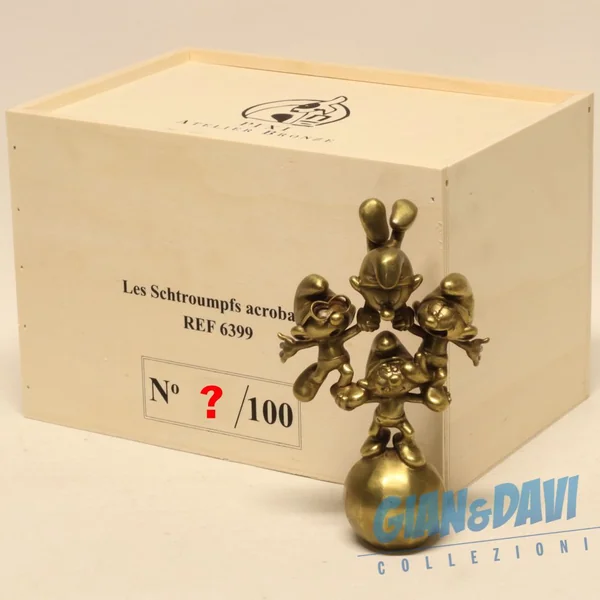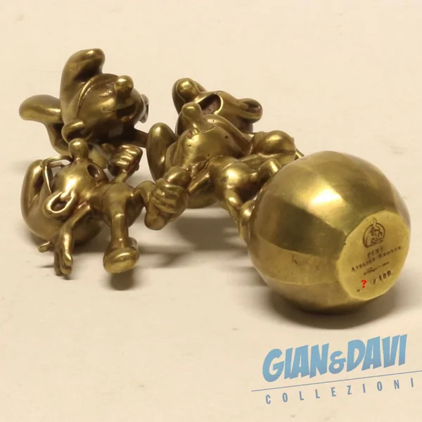 Figurine Schtroumpfs acrobates en bronze véritable sous licence officielle.