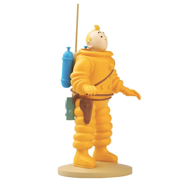 Cette figurine de Tintin habillé en cosmonaute, fabriquée en résine, fait partie d’une série de jolies statuettes conçues dans le respect des détails des dessins d’Hergé.